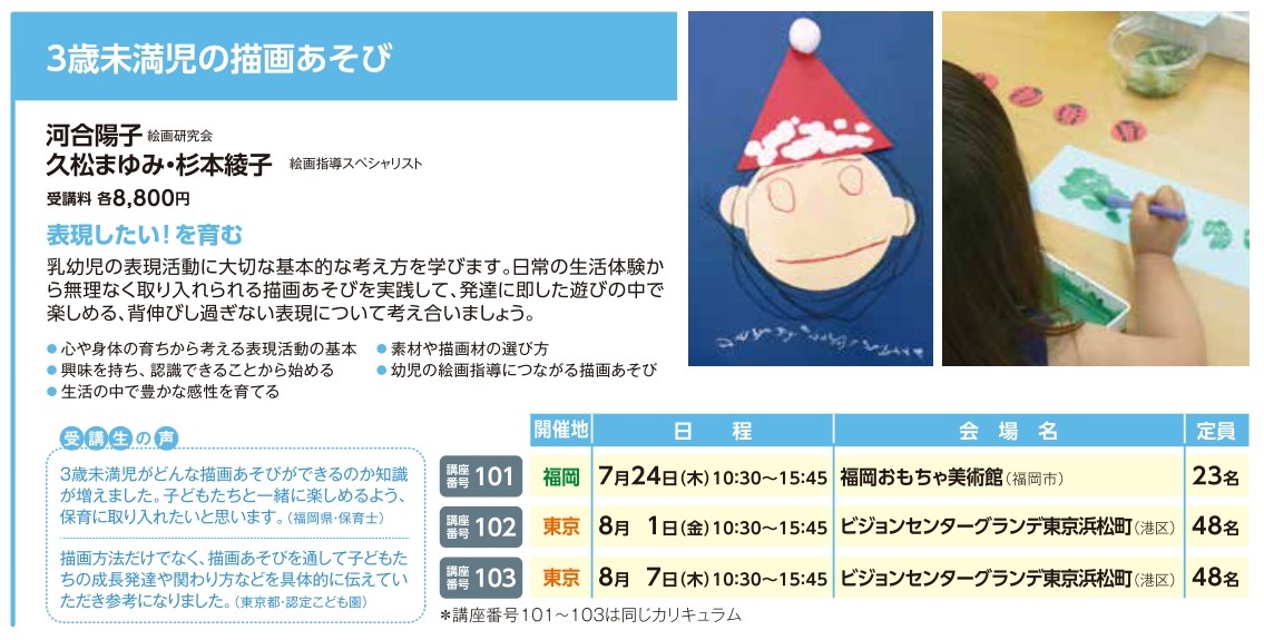 | 講座番号:101 | 講座名: 3歳未満児の描画あそび | 日時:10:30~15:45 |