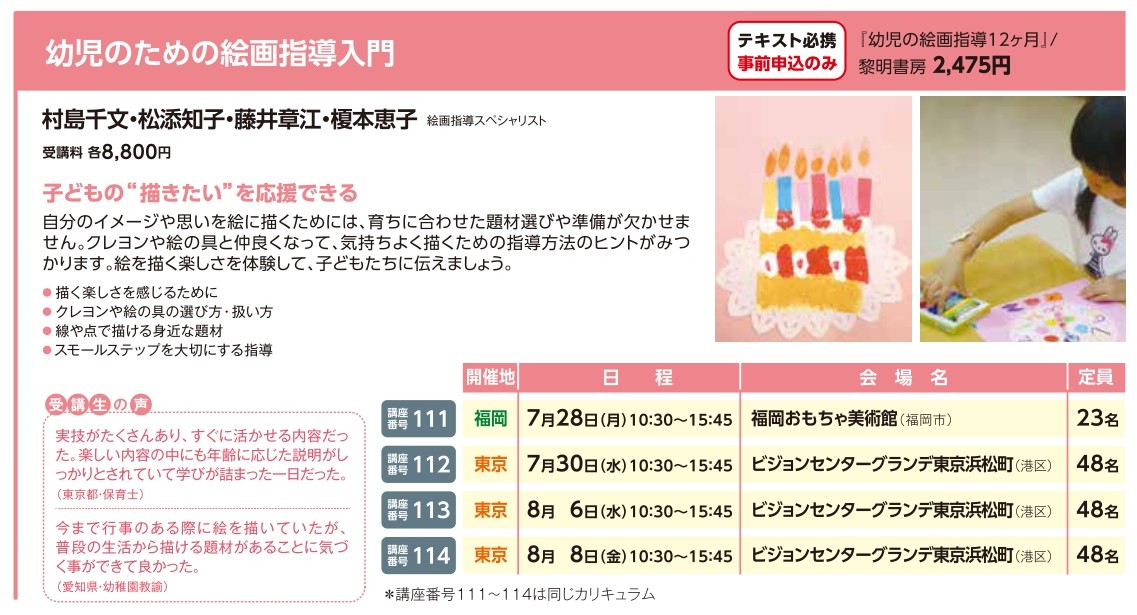 | 講座番号:114 | 講座名: 幼児のための絵画指導入門 | 日時:10:30~15:45 |