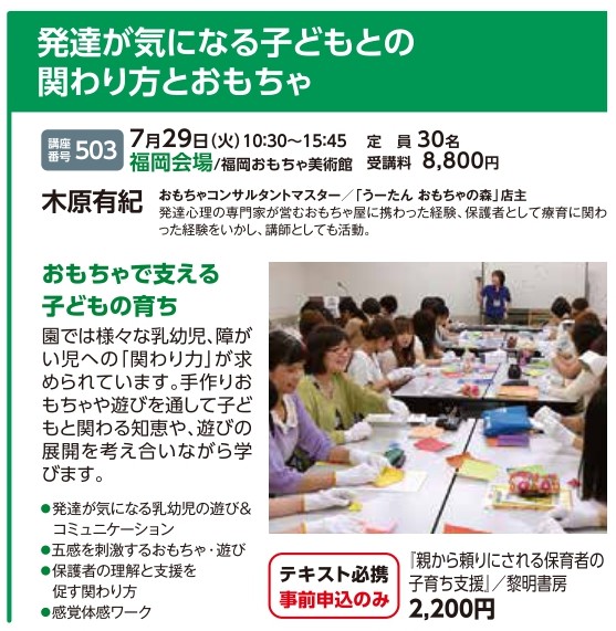| 講座番号:503 | 講座名: 発達が気になる子どもとの関わり方とおもちゃ | 日時:10:30~15:45 |