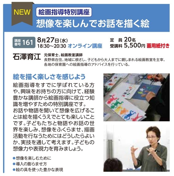 | 講座番号:124 | 講座名: 絵画指導インストラクター養成講座 初級 テキスト付 | 日時:10:30~16:00 |