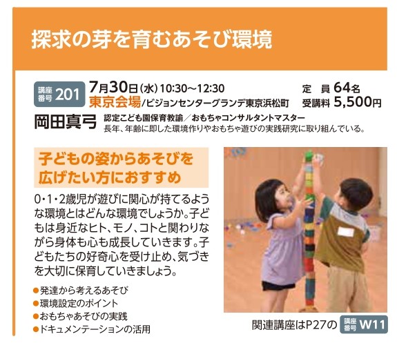| 講座番号:201 | 講座名: 探求の芽を育むあそび環境 | 日時:10:30~12:30 |