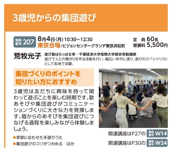 | 講座番号:207 | 講座名: 3歳児からの集団遊び | 日時:10:30~12:30 |