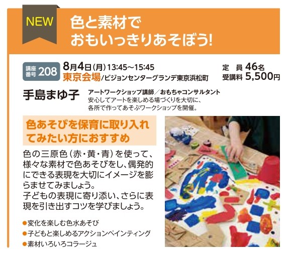 | 講座番号:208 | 講座名: 色と素材でおもいっきりあそぼう! | 日時:13:45~15:45 |