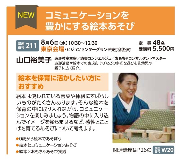 | 講座番号:211 | 講座名: コミュニケーションを豊かにする絵本あそび | 日時:10:30~12:30 |