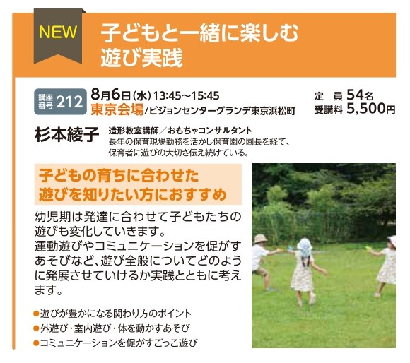 | 講座番号:212 | 講座名: 子どもと一緒に楽しむ遊び実践 | 日時:13:45~15:45 |