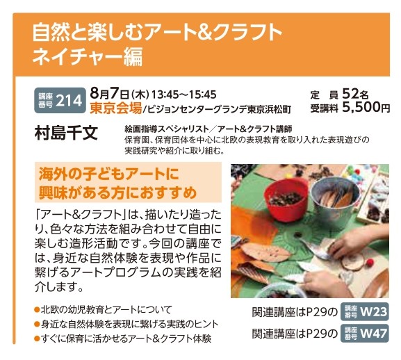 | 講座番号:214 | 講座名: 自然と楽しむアート&クラフト ネイチャー編 | 日時:13:45~15:45 |
