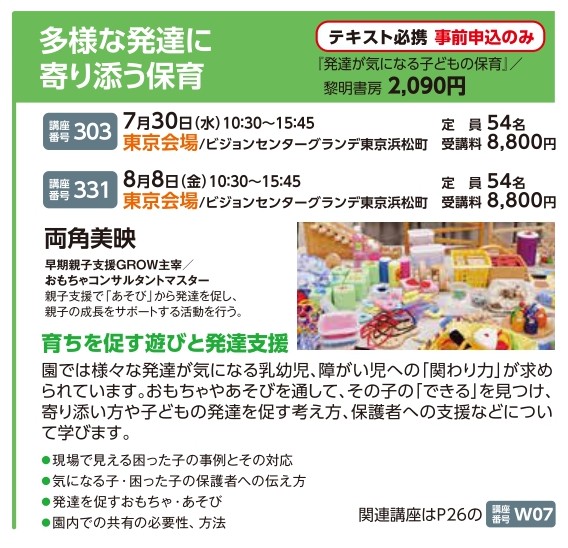 | 講座番号:331 | 講座名: 多様な発達に寄り添う保育 | 日時:10:30~15:45 |