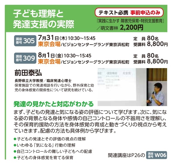 | 講座番号:305 | 講座名: 子ども理解と発達支援の実際 | 日時:10:30~15:45 |