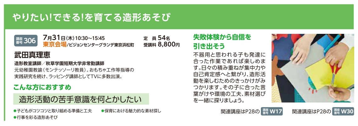 | 講座番号:306 | 講座名: やりたい!できる!を育てる造形あそび | 日時:10:30~15:45 |