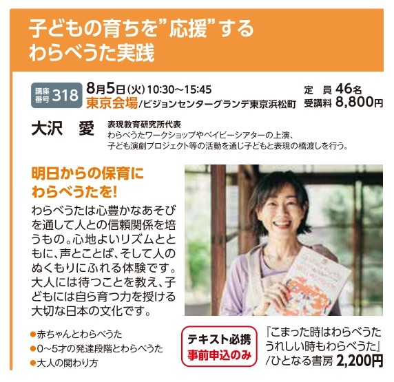 | 講座番号:318 | 講座名: 子どもの育ちを”応援”するわらべうた実践 | 日時:10:30~15:45 |