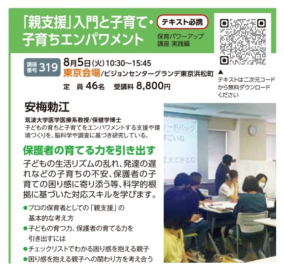 | 講座番号:319 | 講座名: 「親支援」入門と子育て・子育ちエンパワメント | 日時:10:30~15:45 |