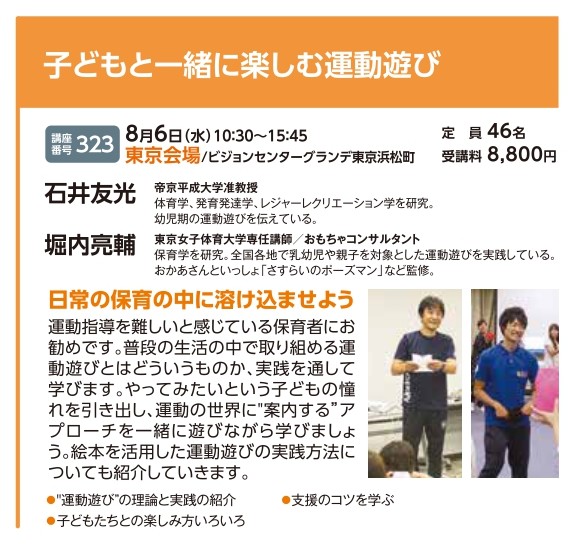| 講座番号:323 | 講座名: 子どもと一緒に楽しむ運動遊び | 日時:10:30~15:45 |