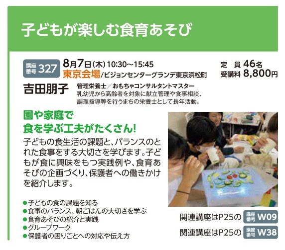 | 講座番号:327 | 講座名: 子どもが楽しむ食育あそび | 日時:10:30~15:45 |