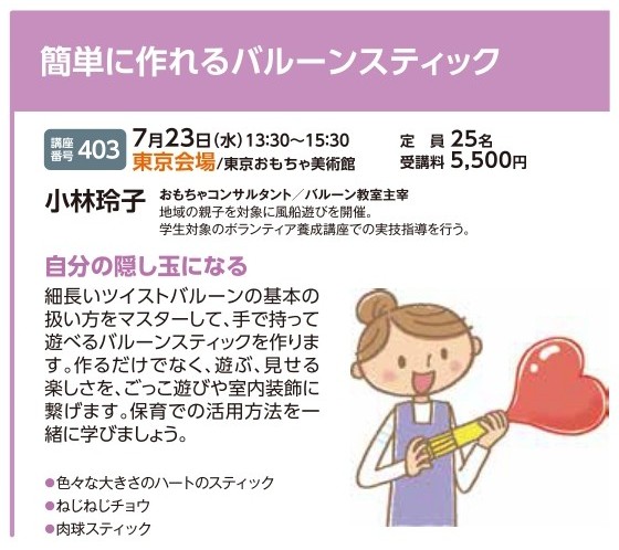 | 講座番号:403 | 講座名: 簡単に作れるバルーンスティック | 日時:13:30~15:30 |