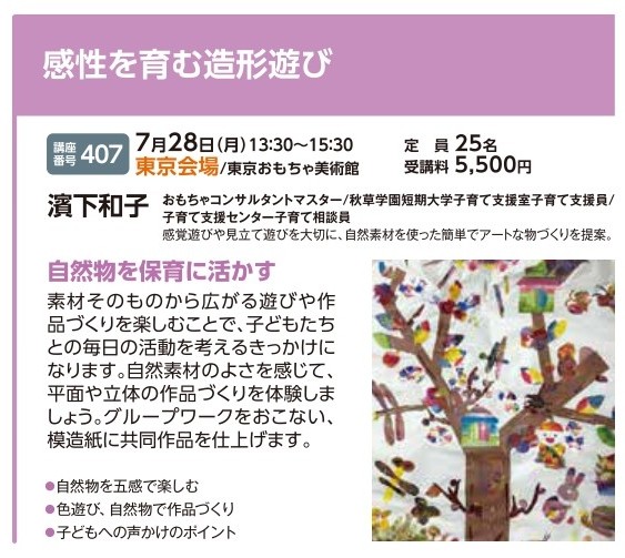 | 講座番号:407 | 講座名: 感性を育む造形遊び | 日時:13:30~15:30 |