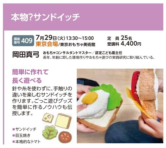 | 講座番号:409 | 講座名: 本物?サンドイッチ | 日時:13:30~15:00 |