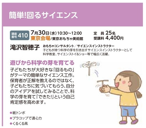 | 講座番号:917 | 講座名: おもちゃインストラクター養成講座 | 日時:10:30~17:30 |
