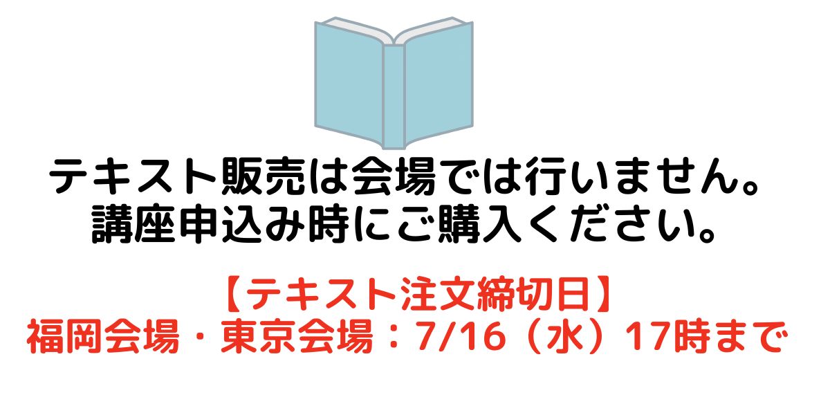 テキスト注文締め切り後に必携テキストがある講座をお申込の方は、書店等でご購入ください。